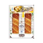 食パンとチーズちくわをオーブントースターで焼く。食パンは押しつぶし て平らにし、チーズちくわは3mm 幅に切る。